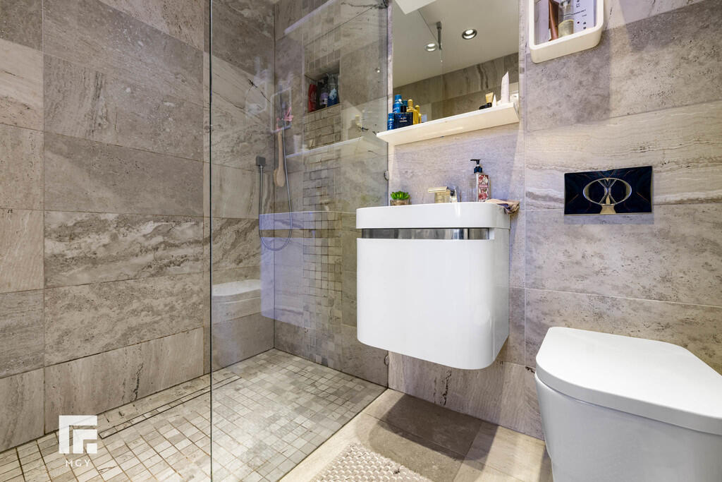 EN-SUITE7' 1" x 5' 0" (2.16m x 1.53m) Fully tiled walls and flooring. Spotlights. WC. Vanity wash hand basin with mixer tap over and storage beneath. Walk in shower cubicle with mains powered shower over. Wall mounted mirror.