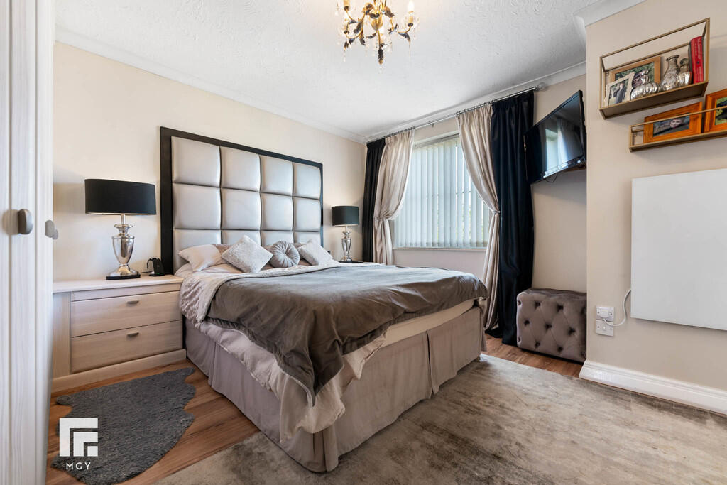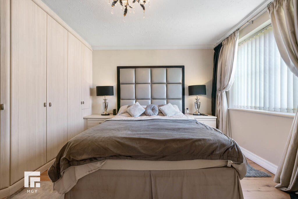 MASTERBEDROOM15' 1" x 12' 0" (4.62m x 3.67m) Carpet to floor. Pendant lighting. Two double glazed windows. Electric heater. Fitted wardrobes. Power points. Door to :-