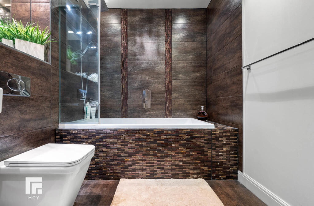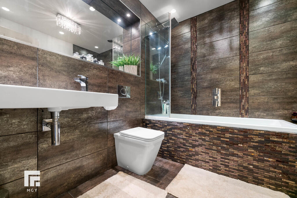 BATHROOM Tiled flooring and fully tiled walls. Spotlights with additional pendant lighting. WC. Wall mounted wash hand basin with mixer tap over. Bath with hot and cold tap over and mains powered shower with handheld attachment above. Feature wall mirror with shelf.