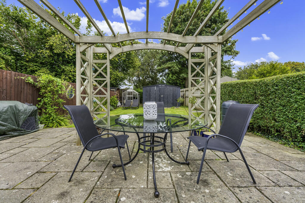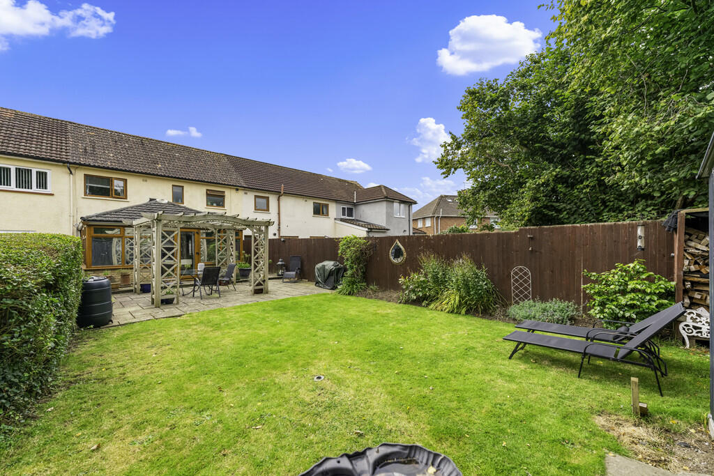 REARGARDEN A pleasant rear garden mainly laid to lawn with full width paved patio. Boundary fence and hedge. Shrub borders. Garden shed and greenhouse.