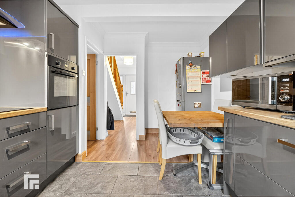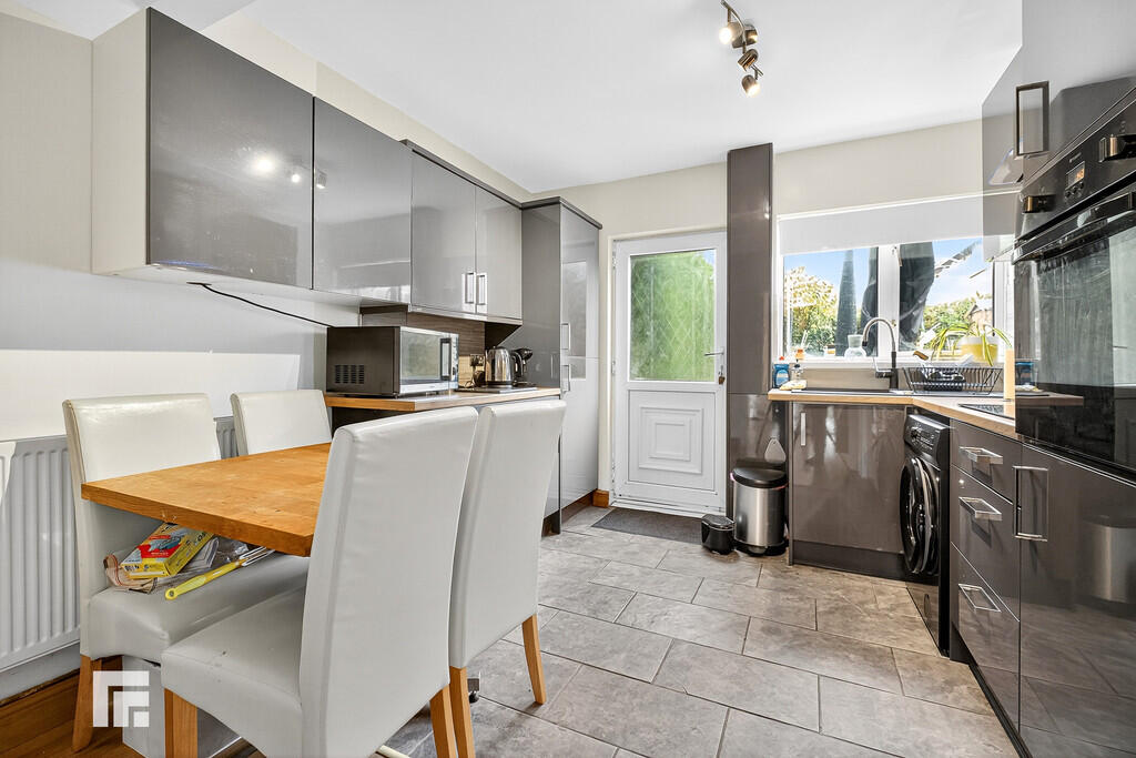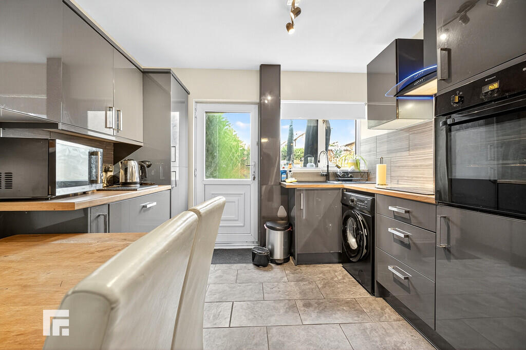 KITCHEN/BREAKFASTROOM12' 9" x 9' 11" (max)(3.90m x 3.03m) A modern fitted kitchen well appointed along three sides in charcoal grey high gloss fronts beneath laminate worktop surfaces. Inset acrylic sink with side drainer. Inset four ring hob with cooker hood above. Integrated oven. Matching range of eye level wall cupboards. Tiled splash back. Ample space for family breakfast table. Tiled flooring to kitchen area and laminate flooring to breakfast area. Upvc double glazed doors to rear garden. Window to rear. Radiator. Door to lounge.