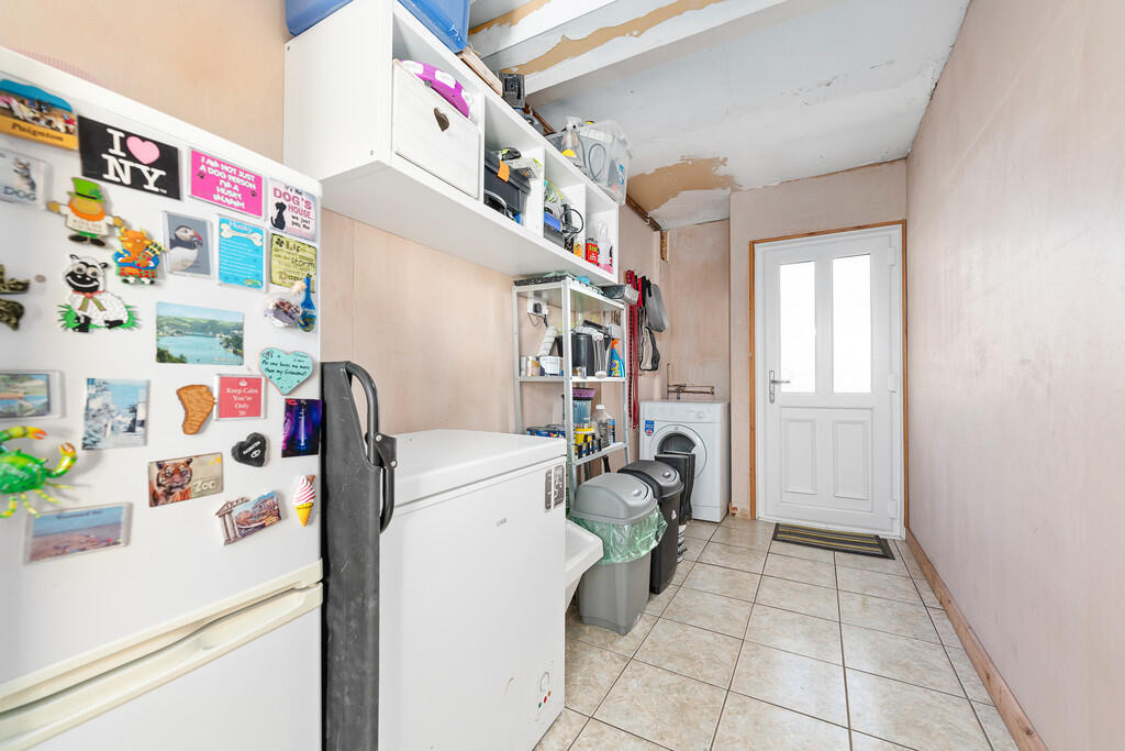 UTILITYROOM18' 4" x 5' 9"(max) (5.60m x 1.77m) A spacious utility with doors to front and rear, space for fridge freezer, tiled flooring, wall mounted Baxi combi gas central heating boiler.