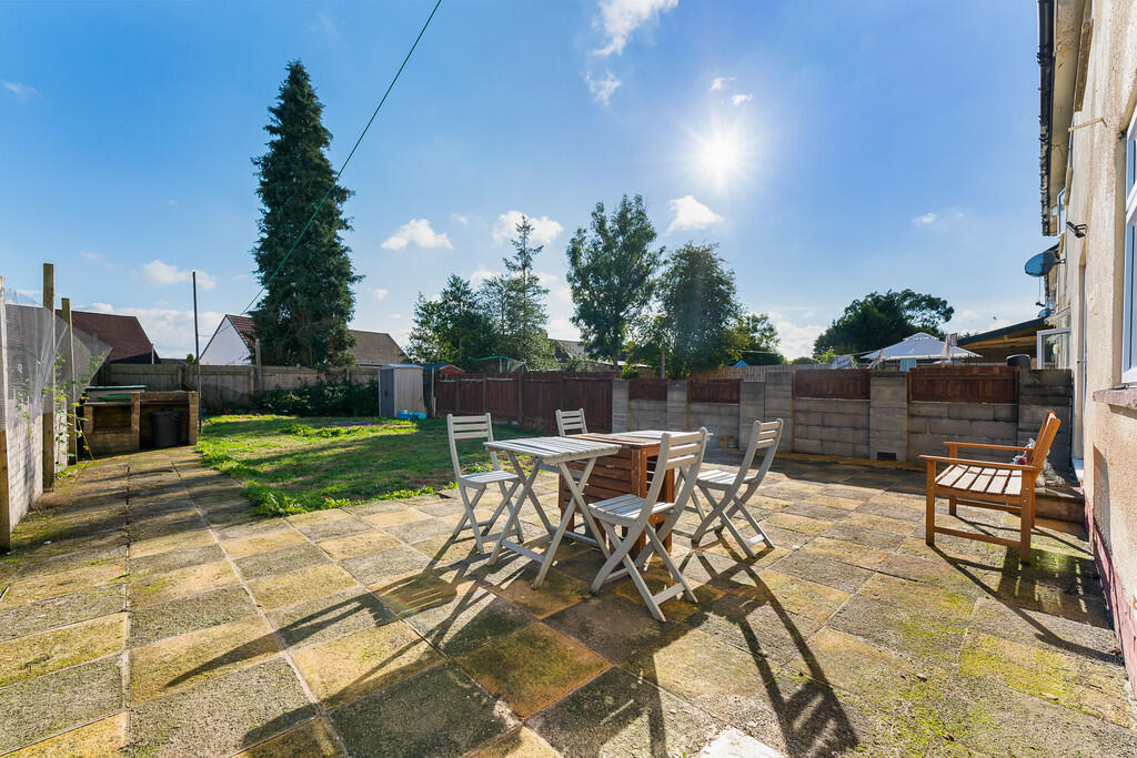 REARGARDEN A large south facing rear garden comprising paved patio leading onto an area of lawn, brick built bbq stand, outside light.
