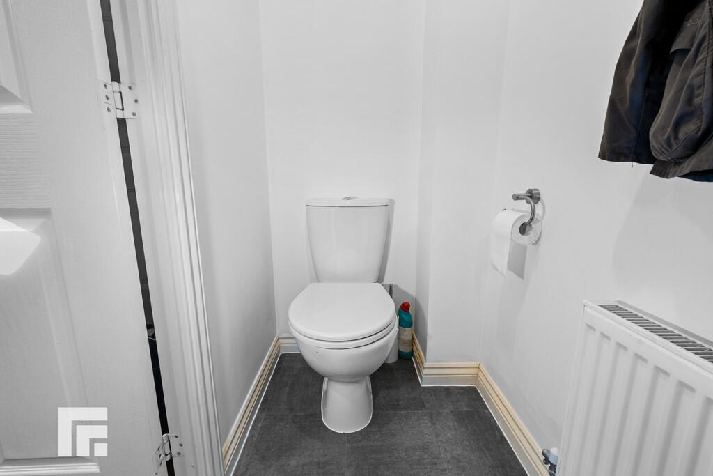 CLOAKROOM White suite comprising low level wc, wash hand basin. Tiled splash back. Extractor fan. Radiator.