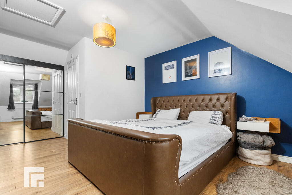 BEDROOMONE17' 3" x 14' 8" (max)(5.28m x 4.48m) Aspect to front, an excellent sized primary bedroom. Built in wardrobe with sliding mirror fronts. Laminate flooring. Two radiators. Door to ensuite.