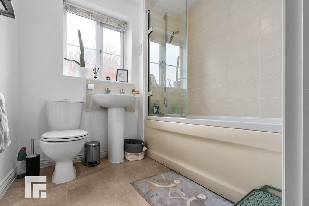 FAMILYBATHROOM6' 8" x 6' 2" (2.04m x 1.88m) White suite comprising low level wc, wash hand basin, panelled bath with chrome shower above and swivel shower screen. Tiled splash back. Obscured glass window to front. Extractor fan. Radiator.