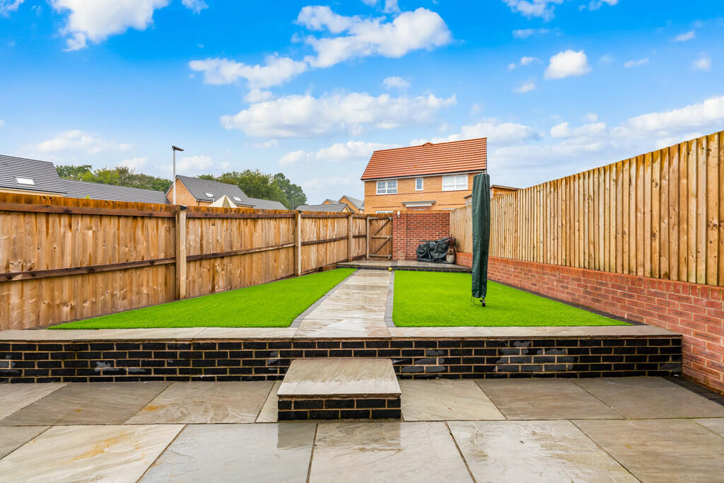 REARGARDEN A beautifully landscaped rear garden comprising wide paved patio, area of artificial lawn with central paved pathway leading to the rear paved patio. Full enclosed. Timber gate to rear leading to parking.
