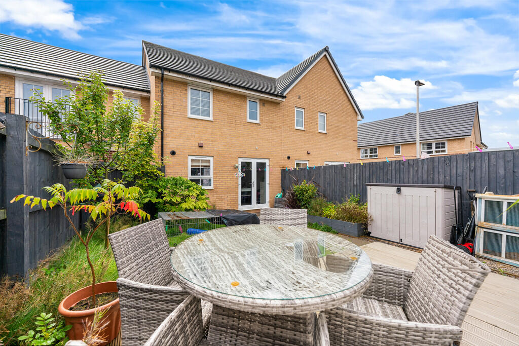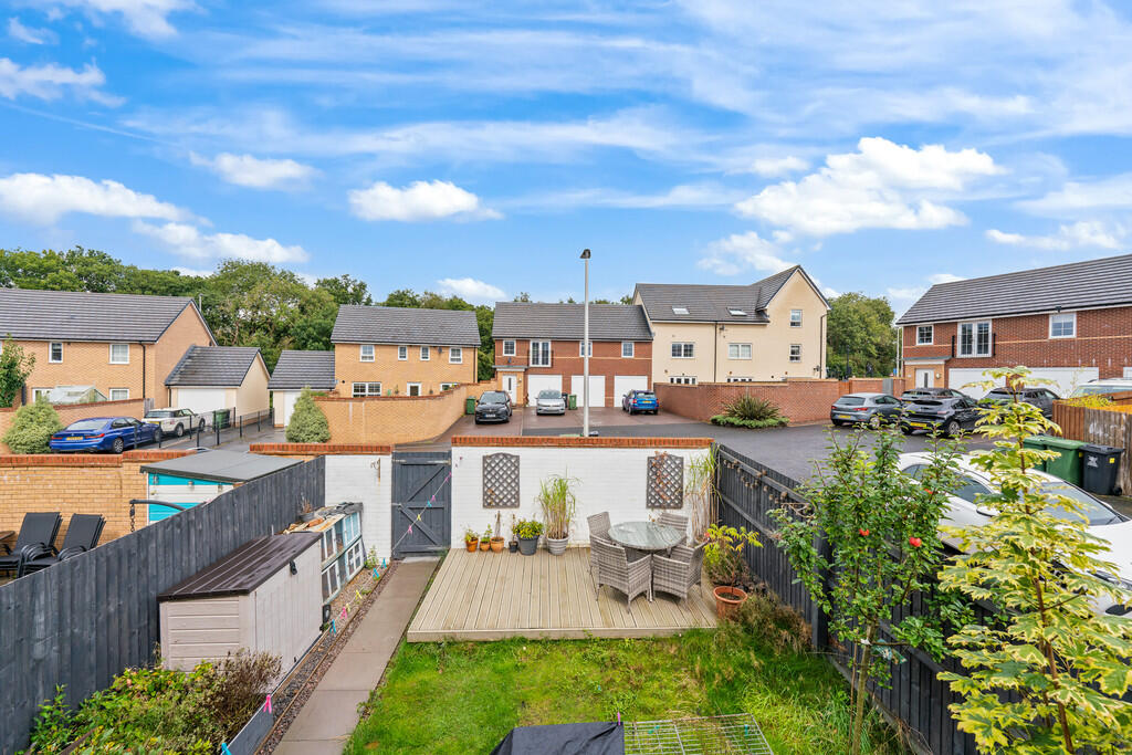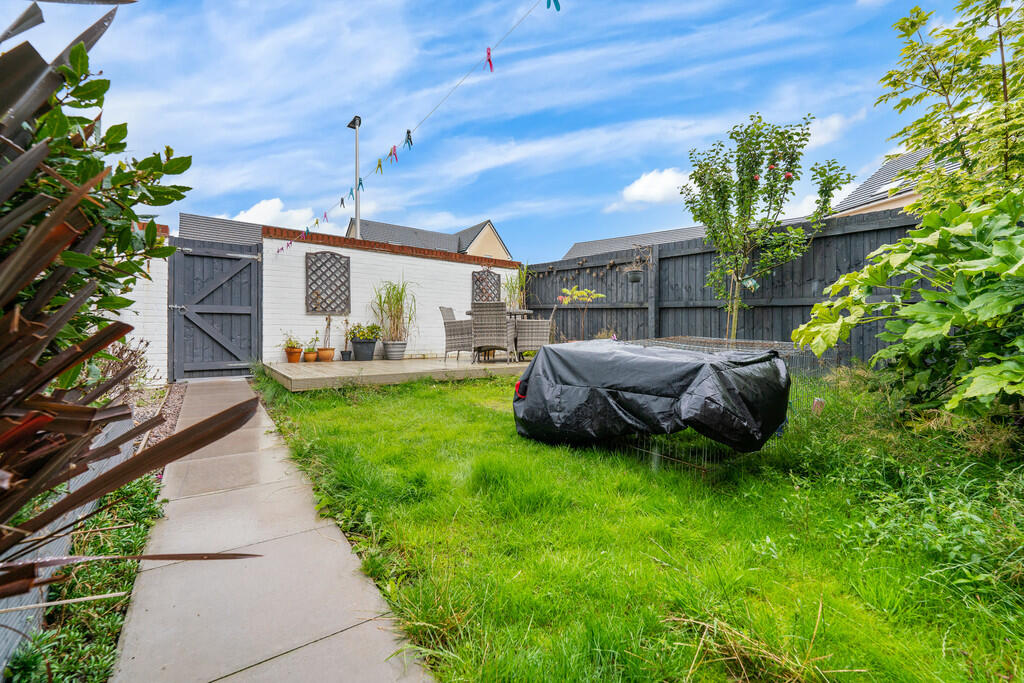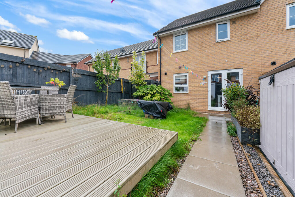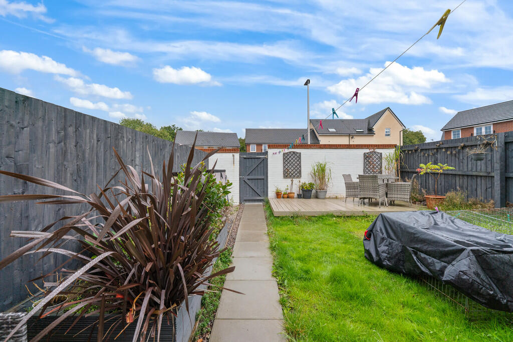 REARGARDEN A delightful, enclosed rear garden comprising area of lawn and decked relaxation area, mostly timber fencing with rear brick wall with timber gate leading to rear parking.
