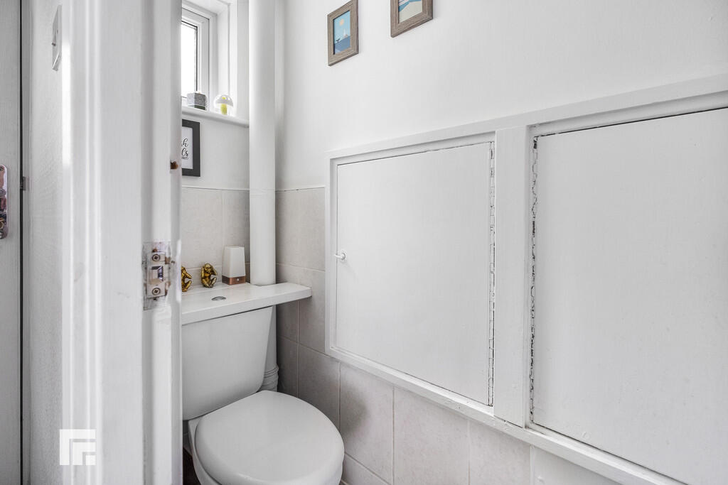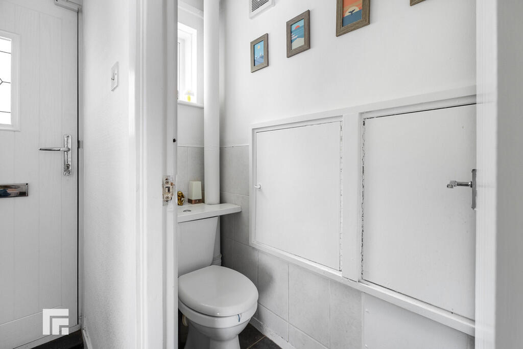 DOWNSTAIRSCLOAK/W.C uPVC obscured double glazed window to rear. Ceramic tiled floor. W.c, inset wash hand basin. Part tiled walls. Cupboard housing electric meter.