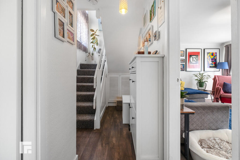 ENTRANCEHALL Entered via composite door with decorative leaded panel. Stairs rising to first floor with understairs cupboard. Laminate flooring. Radiator. Cloak hanging. Door to:-