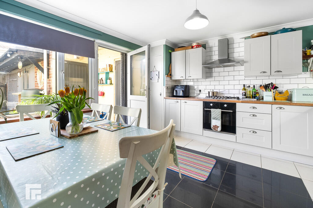 KITCHEN/DINER12' 4" x 12' 2" (3.76m x 3.71m) uPVC double glazed windows to front and rear. uPVC double glazed door to rear. Coved ceiling. Ceramic tiled floor. Range of modern fitted base and wall units with round edge work surfaces and tiled splash backs incorporating one and a half stainless steel sink unit with Monobloc mixer tap. Built in electric oven, 5 ring stainless steel gas hob with extractor over. Plumbing for washing machine. Recess for fridge/ freezer. Wine rack. Pantry.