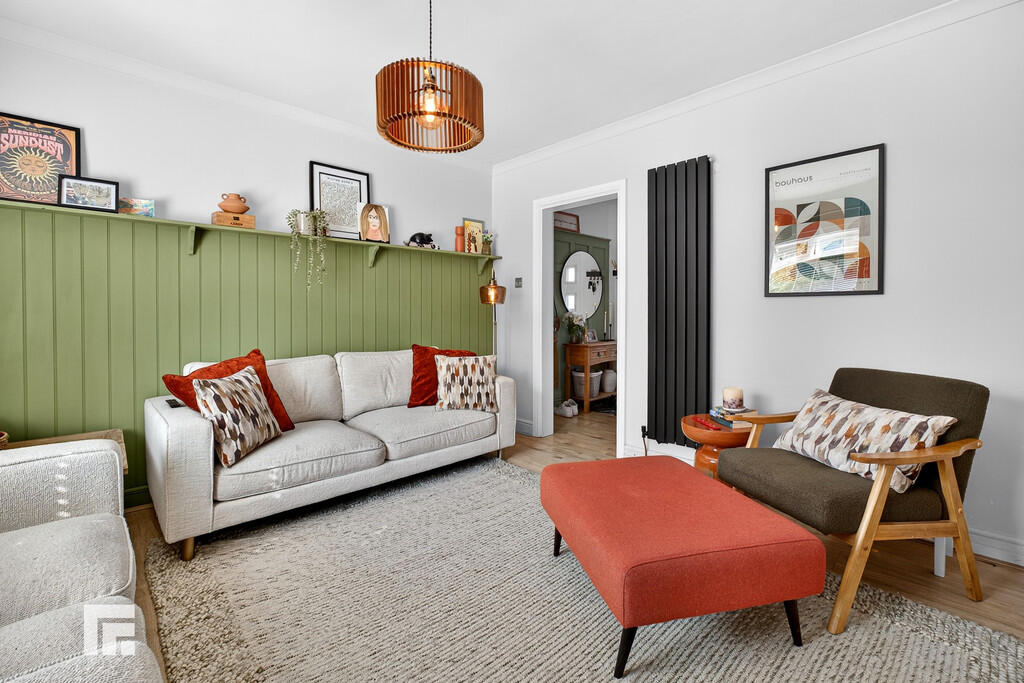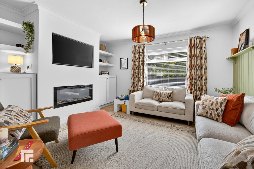 LOUNGE13' 8" x 11' 10" (4.17m x 3.63m) Overlooking the rear garden, a good sized primary reception. Media wall with tv recess and inset electric fire. Storage and shelving to either side. Vertical radiator.