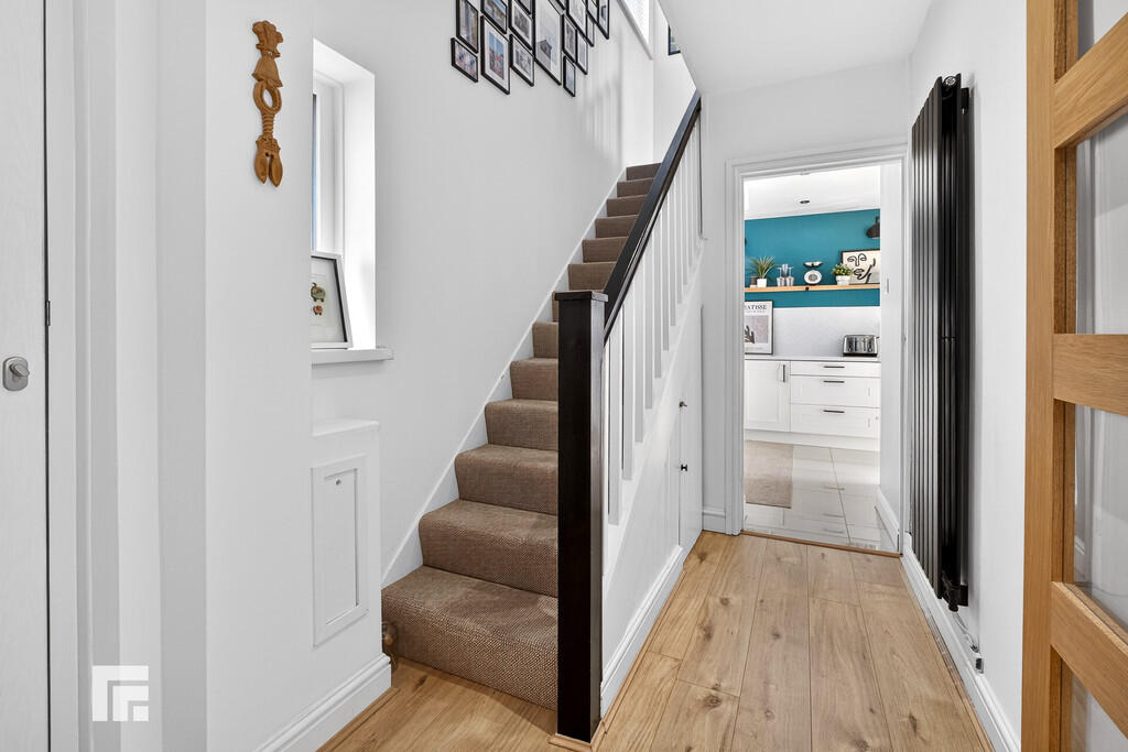 ENTRANCEHALLWAY11' 8" x 5' 10" (3.57m x 1.79m) Approached via a composite entrance door leading to the spacious hallway. Staircase to first floor. Laminate flooring. Low level under stairs storage cupboard. Vertical radiator.