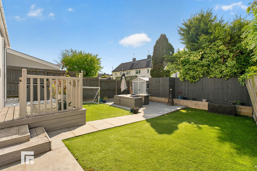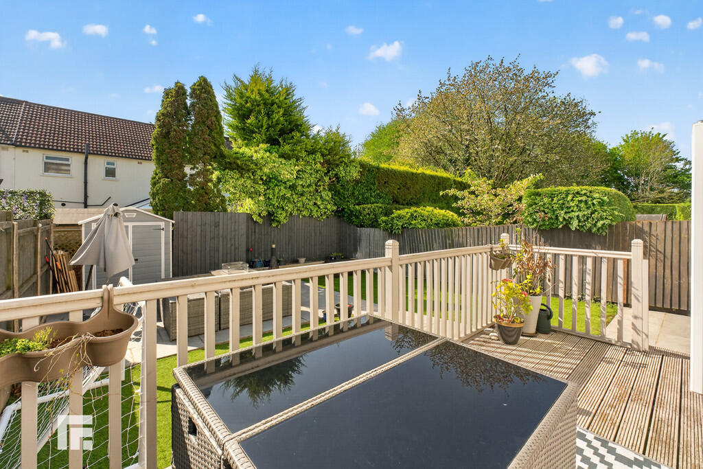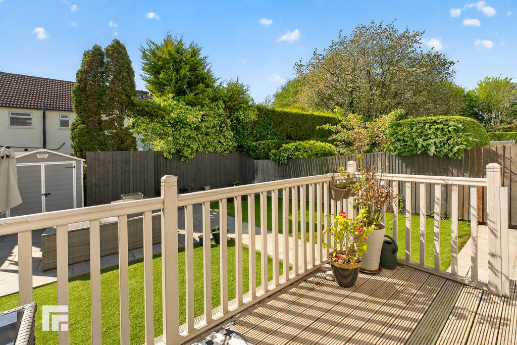 REARGARDEN Enjoying. Southerly aspect. Decked relaxation area leading onto a paved patio area and area of artificial lawn. Enclosed by timber fencing. Outside lighting. Outside power points.