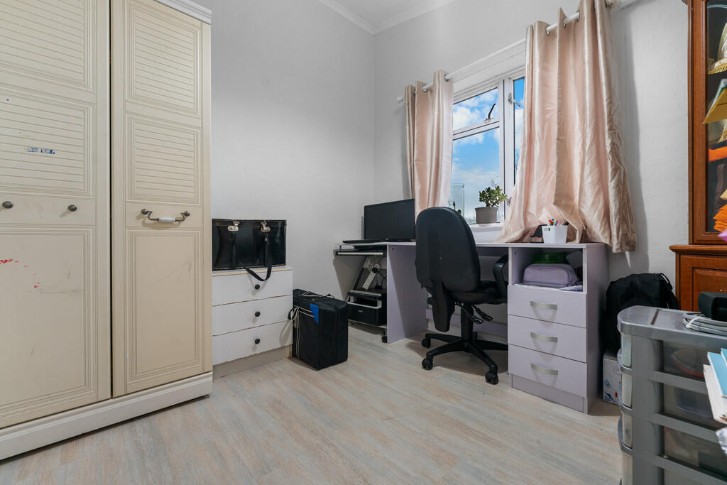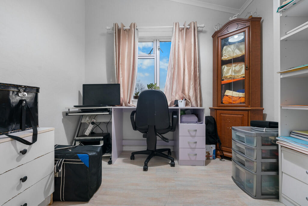 BEDROOMTHREE8' 8" x 8' 7" (2.66m x 2.63m) Double glazed window to front. Laminate wood effect flooring. Built in cupboard with storage cupboard over.