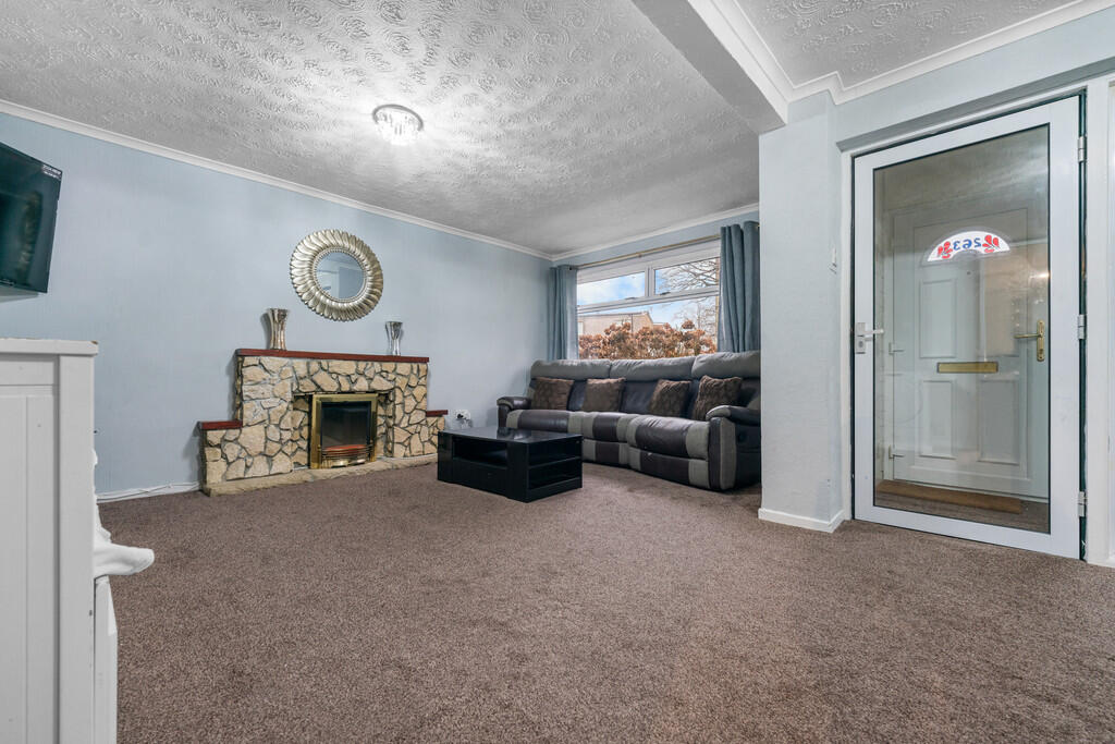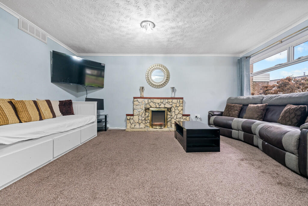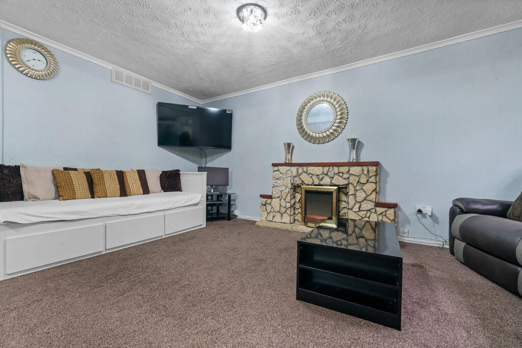 LOUNGE16' 3" x 10' 1" (4.97m x 3.08m) Double glazed window to front with window opening over. Stone feature fireplace with inset electric fire. Cupboard housing electric meter. Radiator.