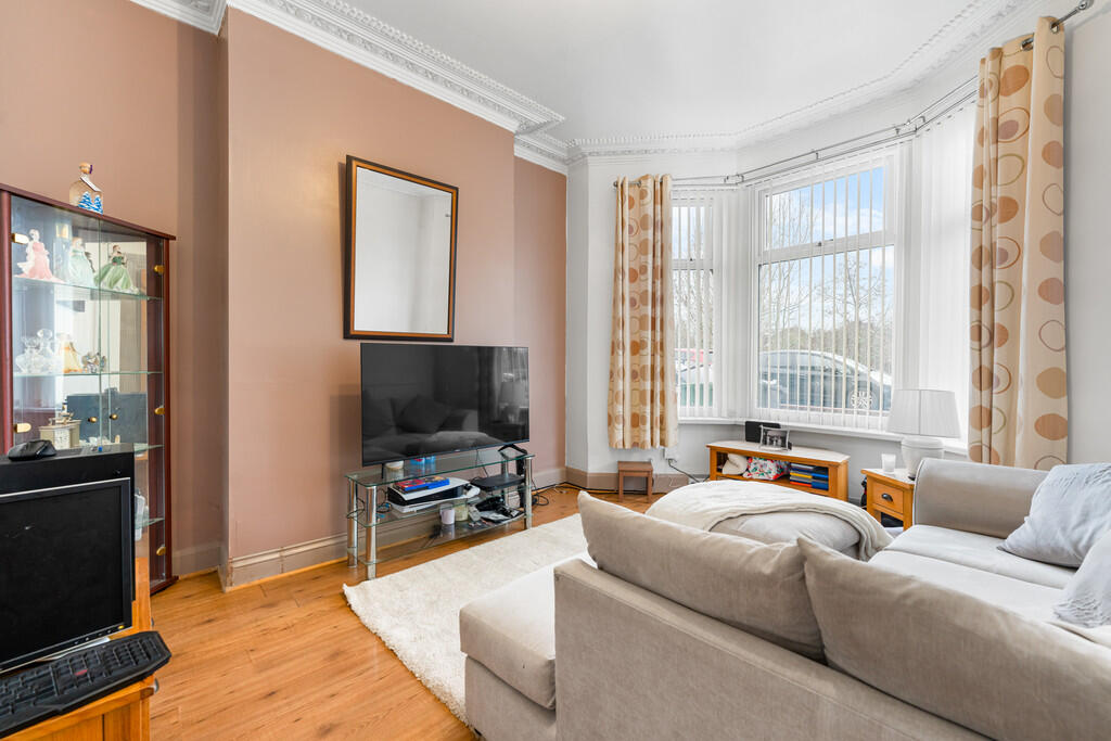 LOUNGE11' 9" x 0' 0" (3.60m x .3.37m) Double glazed uPVC Bay windows to front. Wooden laminate effect flooring. Coving and pendant light to ceiling. TV Aerial point. Wall mounted radiator.