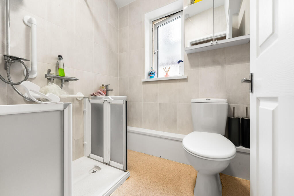 SHOWERROOM6' 0" x 5' 10" (1.83m x 1.80m) Obscure double glazed uPVC windows to side. Vinyl flooring. Tiled walls. W.C. Wall mounted wash hand basin. Double shower cubicle, with mains shower.
