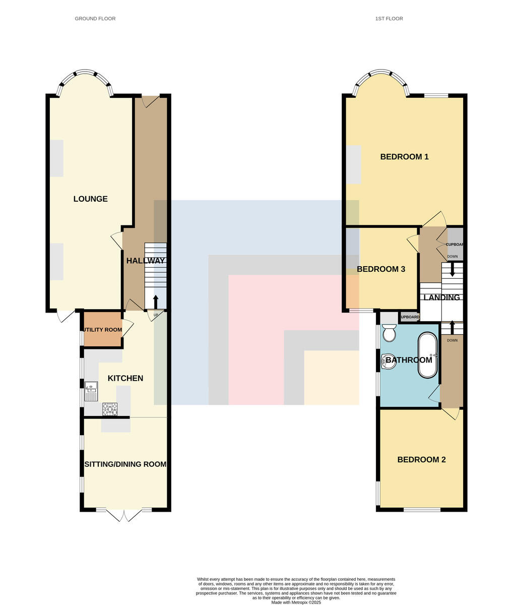 FIRSTFLOORLANDING Carpet to stairs. Split level landing. Pendant light fitting. Radiator. Doors to three bedrooms, bathroom and storage cupboard housing wall mounted boiler.
