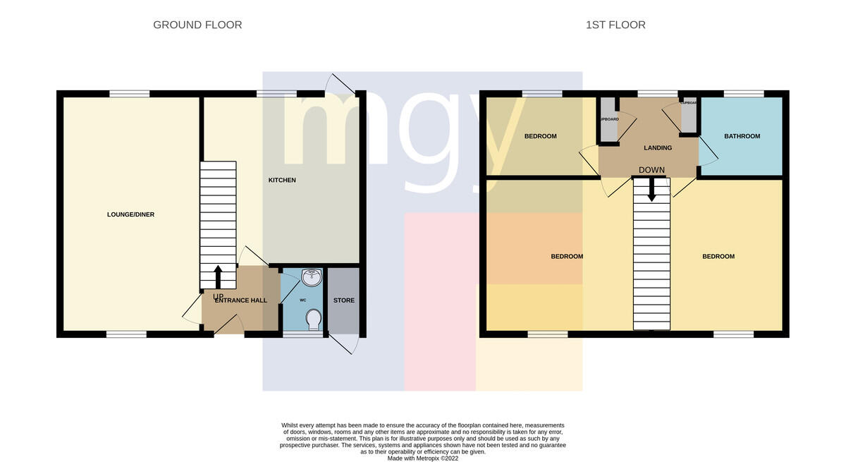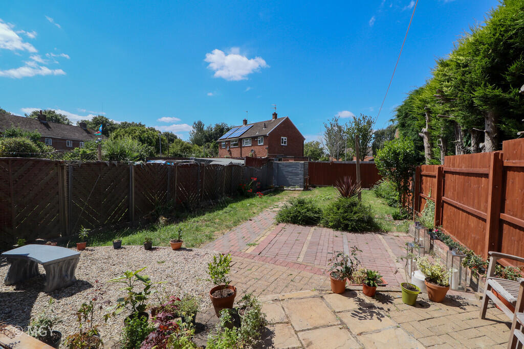 Rear- A good size garden, mostly laid to lawn with paved seating area.