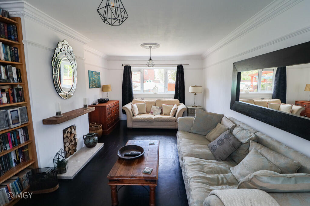 LOUNGE20' 6" x 11' 8" (6.26m x 3.56m) Double glazed uPVC windows to front and rear. Wood flooring. Decorative coved ceiling and picture rail. Chimney breast with wooden mantle. 2 radiators with decorative covers.
