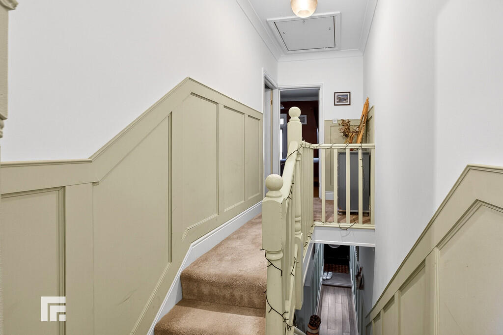 FIRSTFLOOR Split level landing. Pendant light fittings. Loft hatch (loft has been boarded and insulated). Carpet to floor. Doors to three bedrooms and bathroom.
