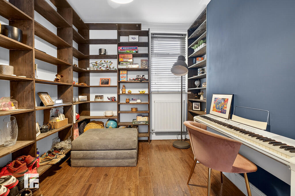 BEDROOMTHREE Laminate flooring. Pendant light fitting. Double glazed window with fitted blinds to side. Radiator. Built in shelving. Power points.