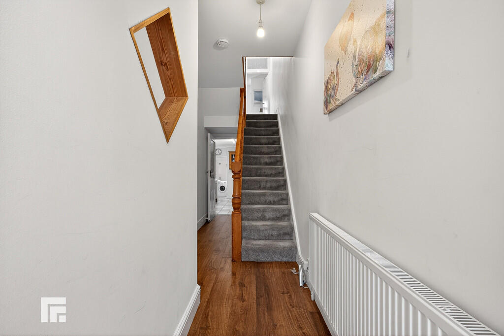 ENTRANCEHALL Entered via front door leading porchway. Laminate flooring. Radiator. Pendant light fitting. Doors to lounge/diner and kitchen. Stairs rising to first floor.
