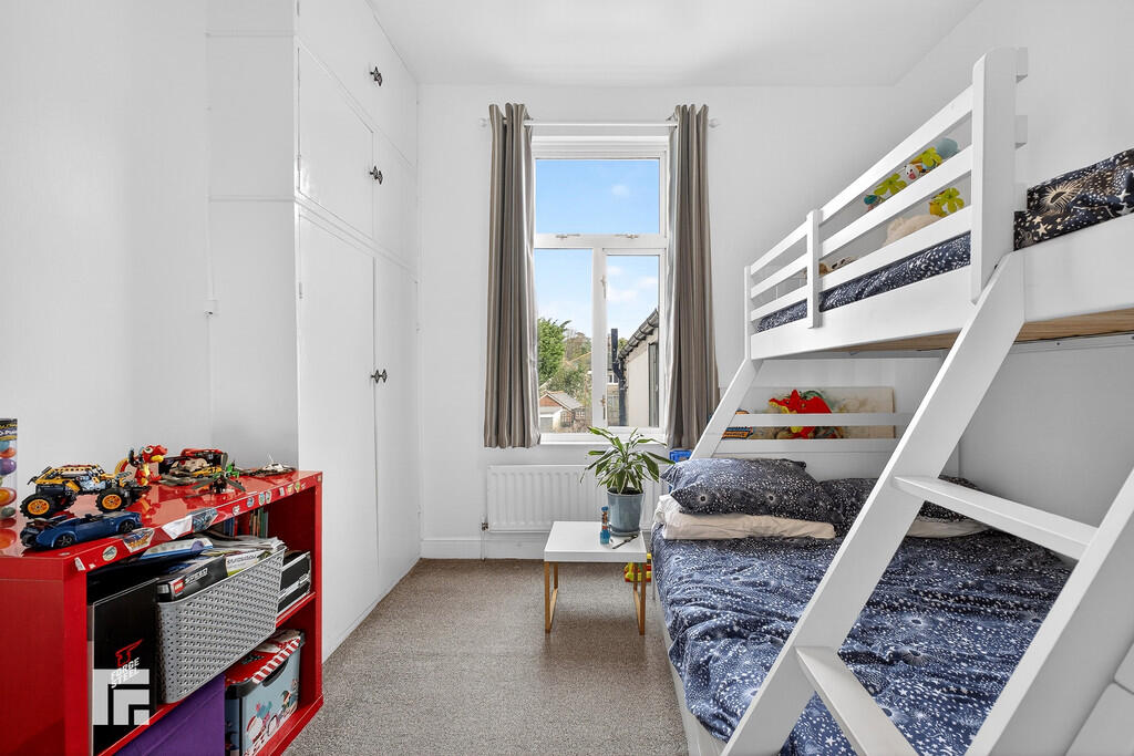 BEDROOMTHREE8' 8" x 9' 4" (2.65m x 2.86m) Carpet to floor. Pendant light fitting. Power points. Double glazed uPVC window to rear aspect. Fitted storage cupboard with shelving. Radiator. TV point.