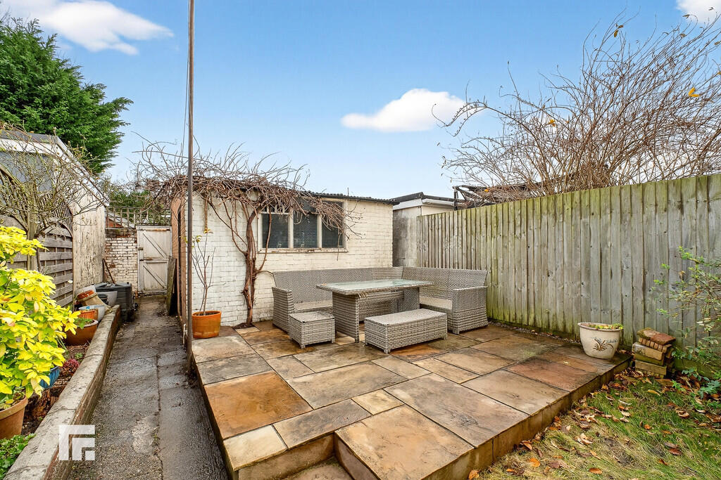 Rear - Laid to tiles. Patio. Mature shrubs and flower bed borders. Lawn area. Outside tap. Pathway to garage. Access to gated rear lane.