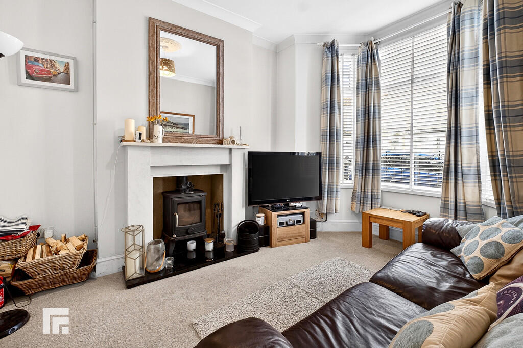 LIVINGROOM12' 6" into bay x 9' 10" into alcove (3.82m x 3.00m) Double glazed bay window. Coved ceiling. Radiator. Feature fireplace with wood burning stove.