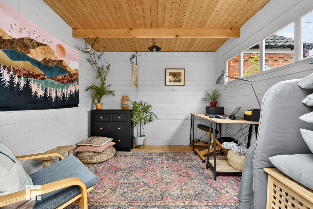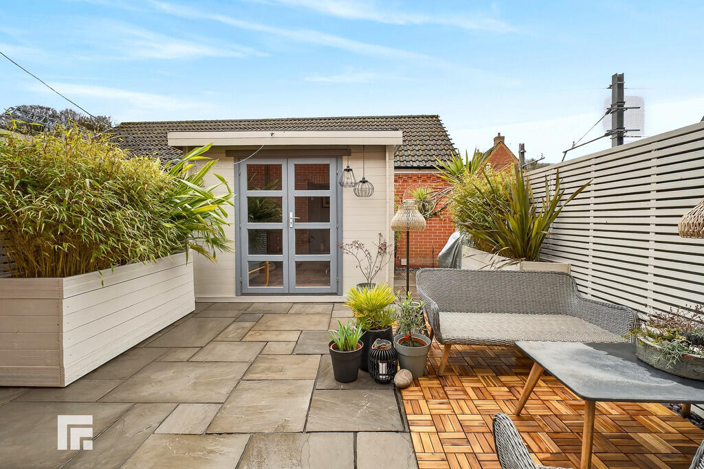 REARGARDEN A beautifully, maintained, enclosed rear garden. Painted timber fence borders, a paved patio area. Two wooden planters. Garden room/shed with power. Outside power socket behind garden room/shed. Timber gate to side for access to garage and parking space.