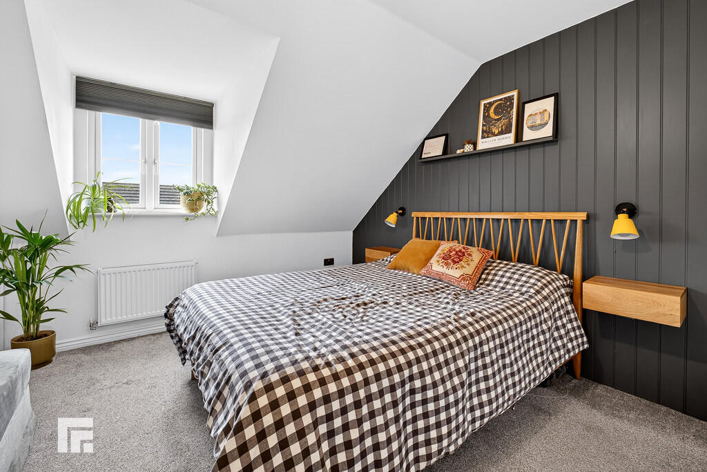 BEDROOMONE19' 9" (max)x 12' 10" (6.03 m x 3.93m) An impressive primary bedroom. Radiator. Dormer uPVC window to front. Access to roof space.Door to en-suite.