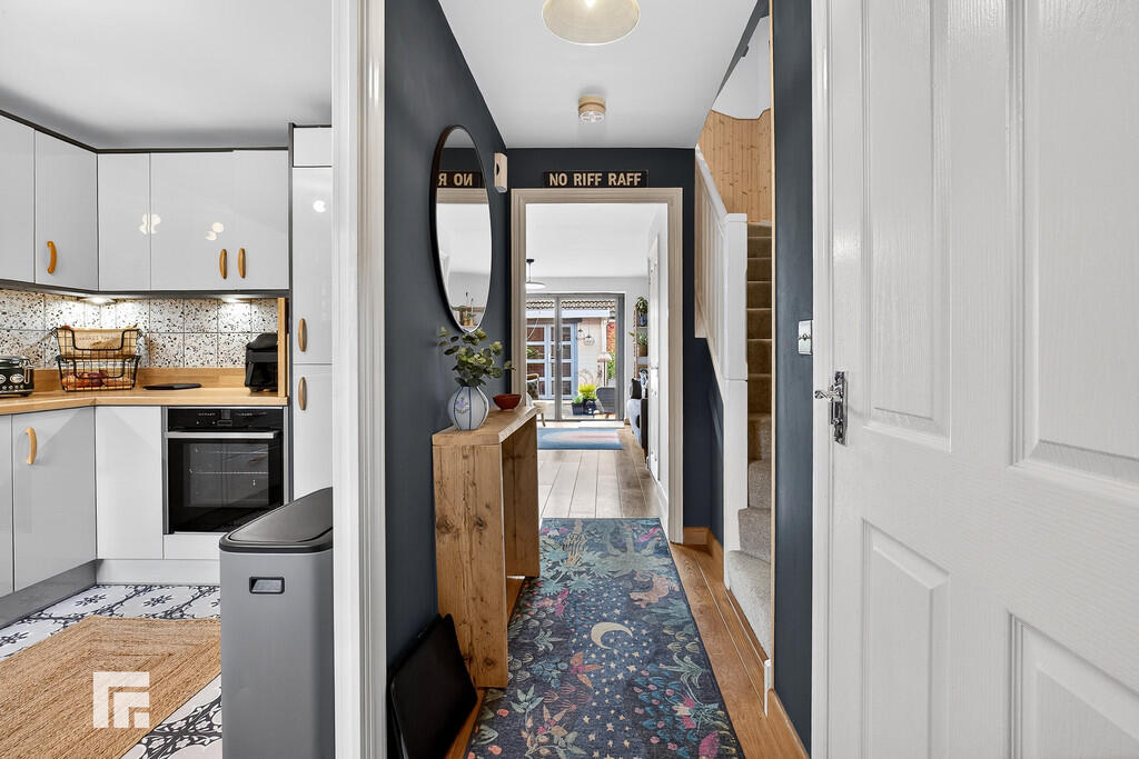 ENTRANCEHALLWAY Entered via a modern door, a spacious hallway. Engineered oak flooring. Radiator. Cupboard housing power points. Staircase leading to first floor. Doors to all rooms.