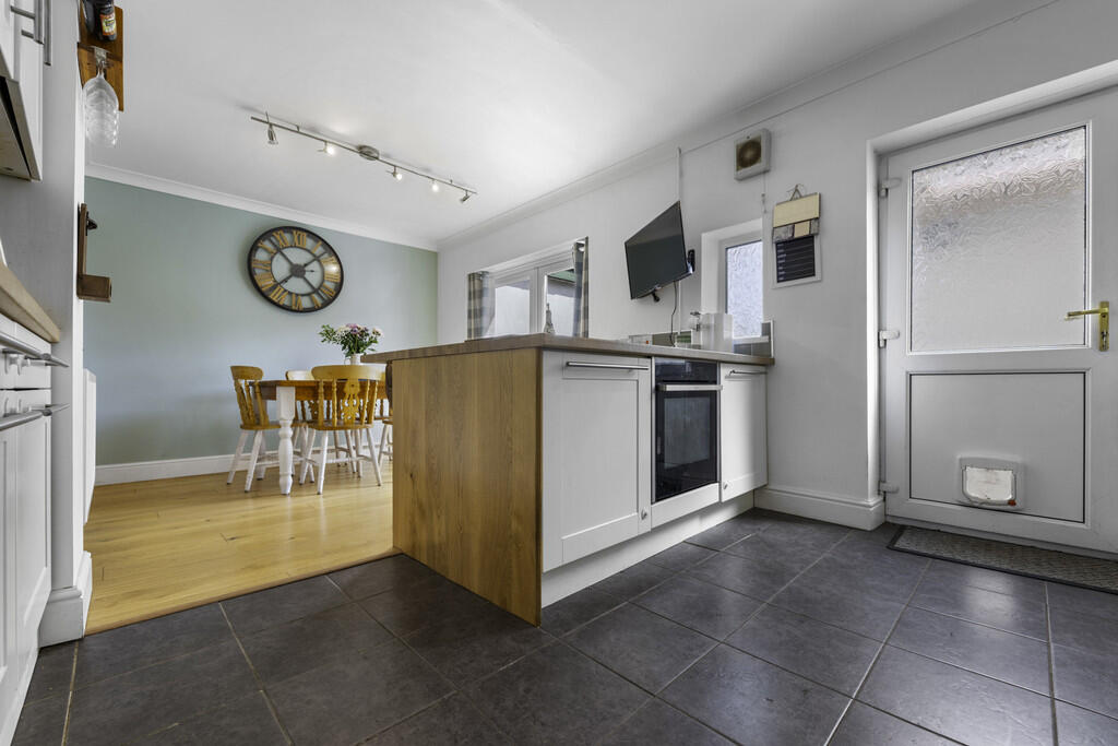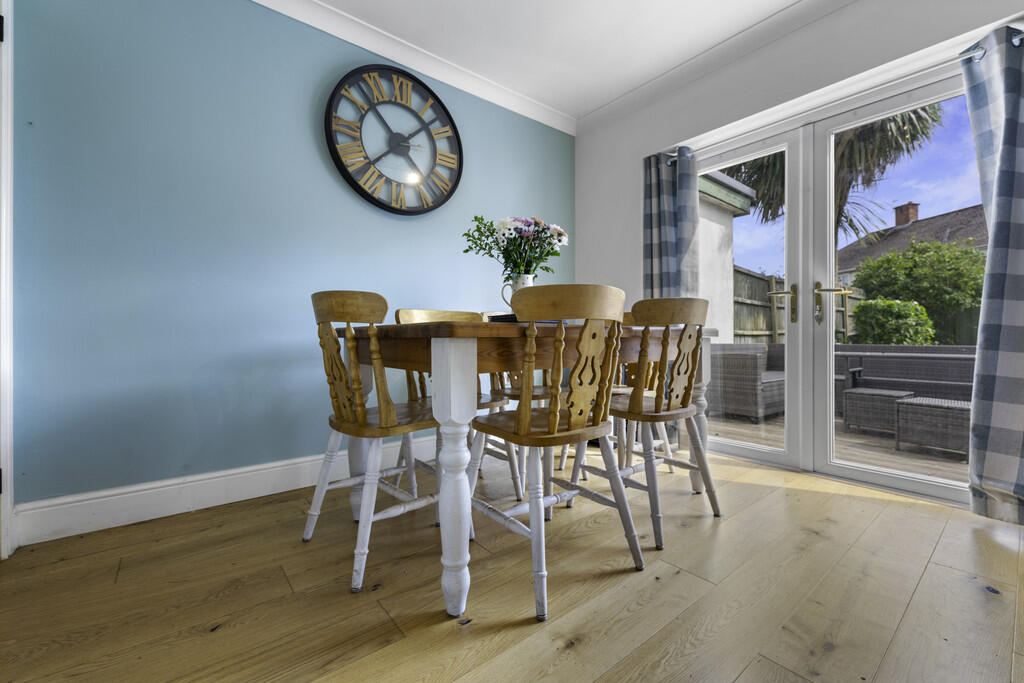 Tiled splash back with smooth walls and ceiling, a central light pendant and finished with a combination of tiled flooring and engineered wood flooring. Space for dining table and chairs. Upvc double glazed French doors leading to rear garden, single upvc double glazed door leading to rear garden and finally two upvc double glazed obscure windows to rear allowing an abundance of natural light.