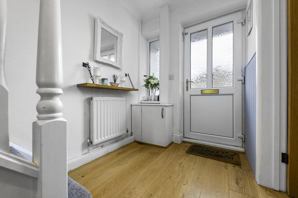 ENTRANCEHALL Enter into hallway via upvc double glazed front door. Smooth walls with feature wall panelling, textured ceiling, a central light pendant and finished with engineered wood flooring. Carpeted staircase leading to first floor. Door leading to lounge and door leading into kitchen/dinning room. Upvc double glazed obscure window to front. Under stairs cupboard ideal for storage.