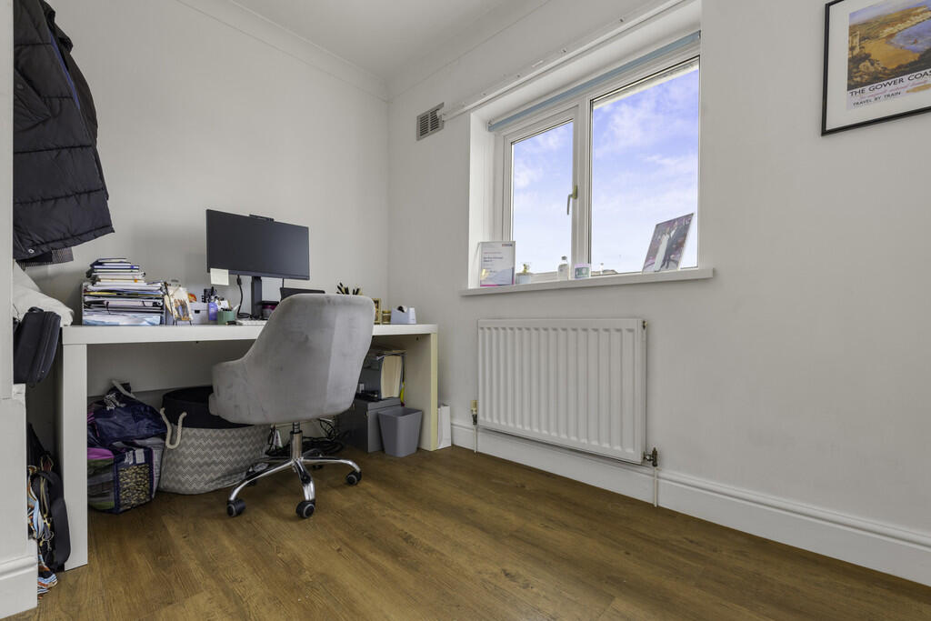 BEDROOMTHREE9' 3" x 7' 3" (2.84 m x 2.21 m) Smooth walls and ceiling with a central light pendant and finished with laminate flooring. Upvc double glazed window to front. Alcove storage with fitted hanging rail.
