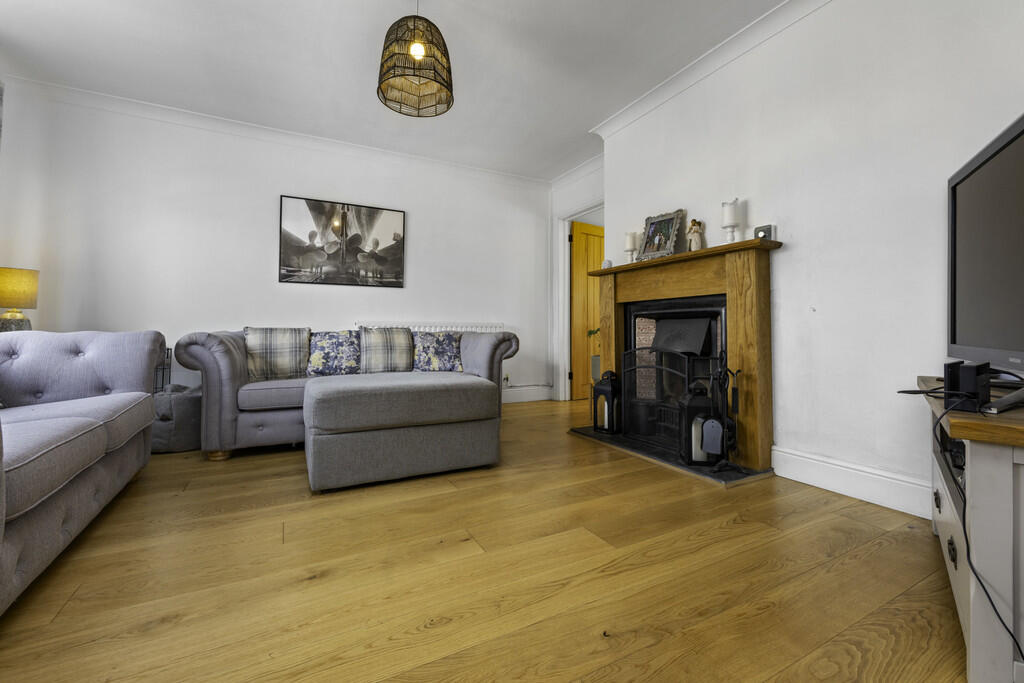 LOUNGE13' 11" x 13' 6" (4.26 max m x 4.14m) Smooth walls and ceiling with a central light pendant and finished with engineered wood flooring. Feature fireplace and surround. Door leading into kitchen/dining room. Upvc double glazed window to front.