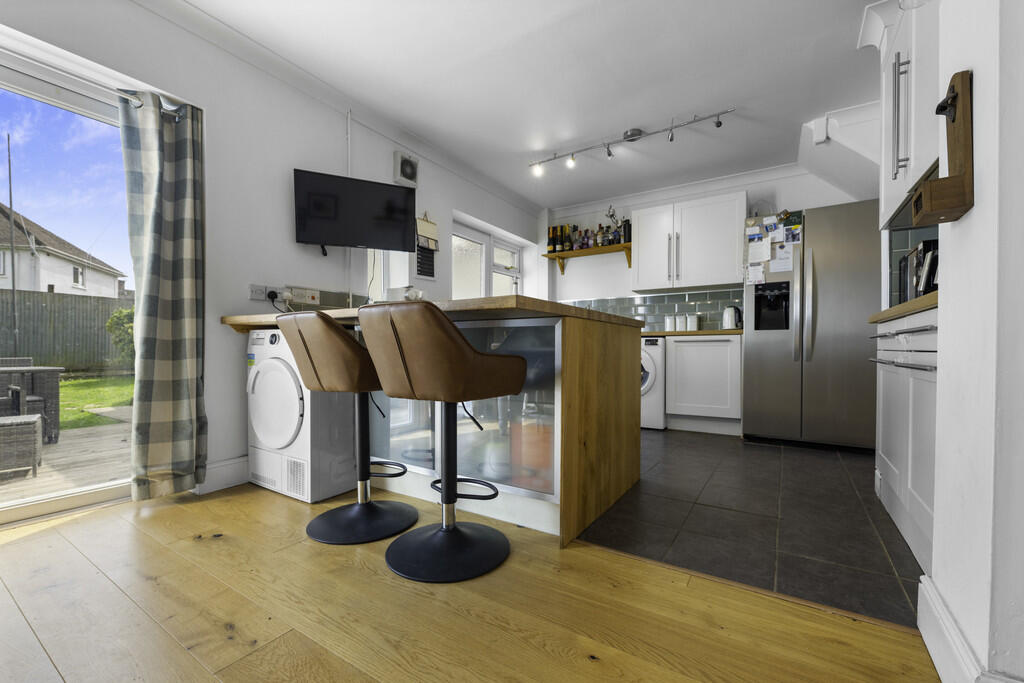 KITCHEN/DININGROOM10' 7" x 19' 7" (3.24m x 5.99m) Fitted with a range of base and eye level units with worktops over. Built in NEFF hide and slide oven and induction hob. Space for American style fridge/freezer, washing machine, tumble dryer and an integral dishwasher. Central breakfast bar with seating for two.