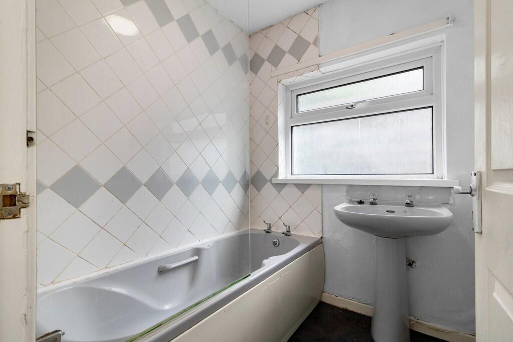 BATHROOM Double glazed opaque window to the rear. Radiator. Panelled bath with shower over. Wash hand basin. Ceramic tile to splash back arears. Vinyl flooring.