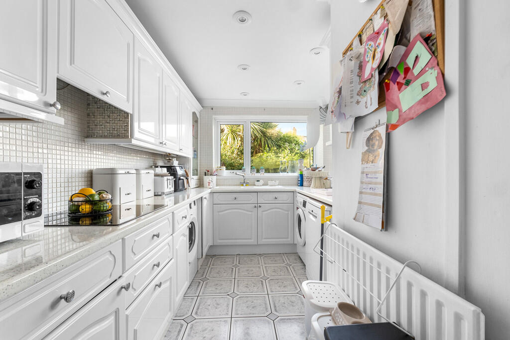 KITCHEN16' 2" x 7' 7" (4.94m x 2.33m) Appointed across three sides high and low level cupboard space beneath laminate work surface. Granite 1.5 sink bowl. integrated four ring electric hob and extractor fan. Integrated oven and grill. Space for American fridge freezer, dishwasher, washing machine, and tumble dryer. Tiled flooring. Door leading to cloakroom. Large uPVC double glazing window to rear. Large uPVC double glazing window to conservatory on side. Tiled walls. Spotlights. Radiator.