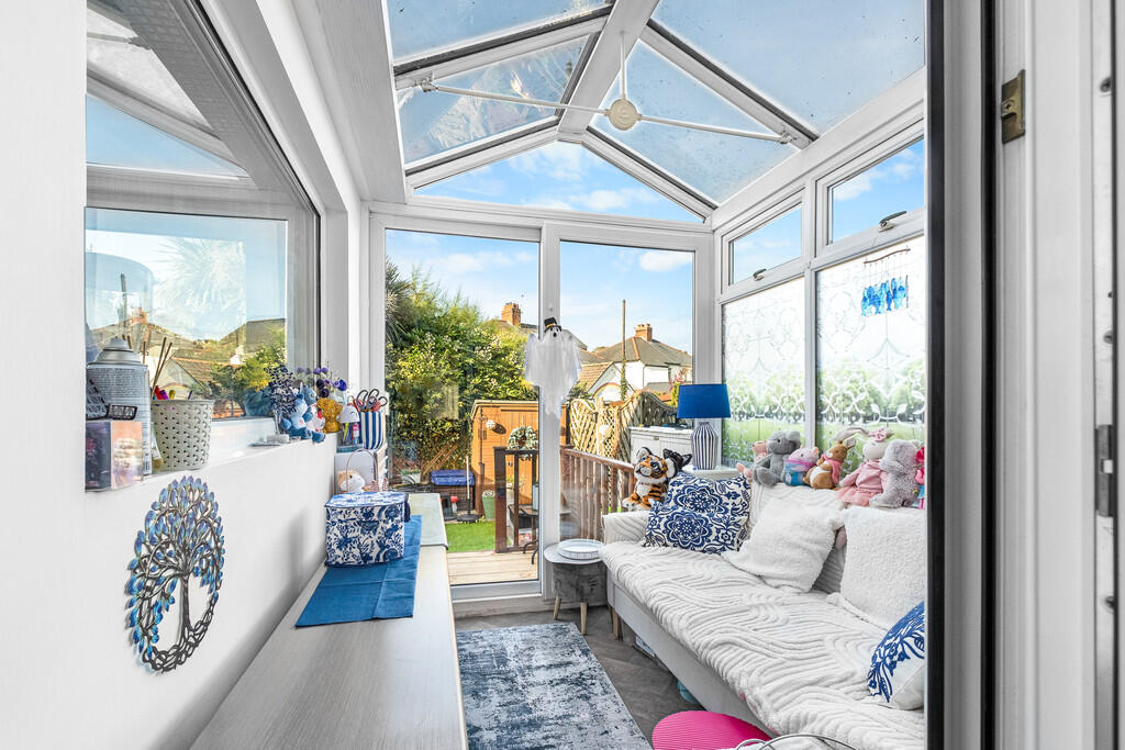 CONSERVATORY7' 11" x 6' 11" (2.43m x 2.11m) uPVC double glazing doors to rear garden. uPVC roof, side window to kitchen and window to side. Radiator. Laminate flooring.