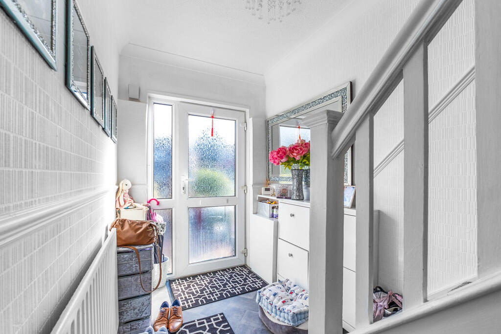 ENTRANCEHALLWAY10' 1" x 5' 3" (3.09m x 1.61m) uPVC double glazed frosted door to front. Laminate flooring. Doors leading to living / dining room and cloakroom. Under stair storage. Stairs leading to first floor. Radiator. Picture rail.
