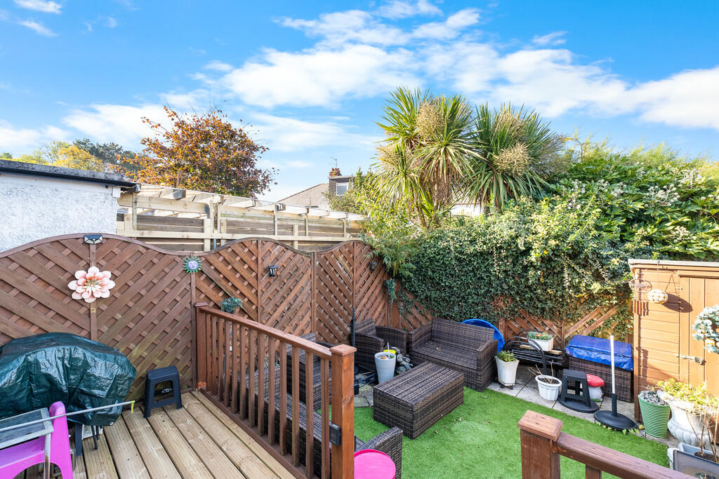 OUTSIDE Rear garden: private and enclosed. Fence to boundary. Side access. Raised decking with space for outdoor seating area. Astroturf with paved slabs surrounding.