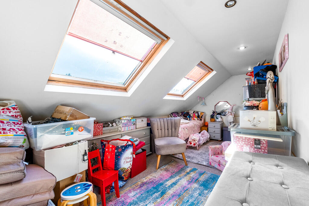 LOFTROOM8' 9" x 17' 7" (2.67m x 5.37m) Large double bedroom. Two "velux" windows to front. Radiator. Spotlights. Access to loft.