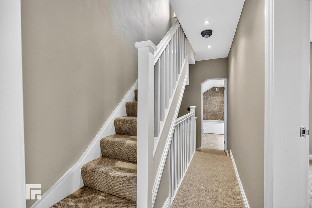 FIRSTFLOORLANDING Split level landing with carpeted flooring. Doors leading to two bedrooms and family bathroom room. Stairs rising to second floor.