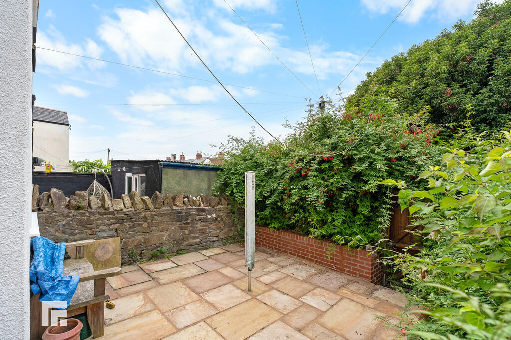OUTSIDE Rear Garden - North-west facing/ Patio and sitting area. Rear gate access to rear lane. Washing line. Private and enclosed wall boundary.