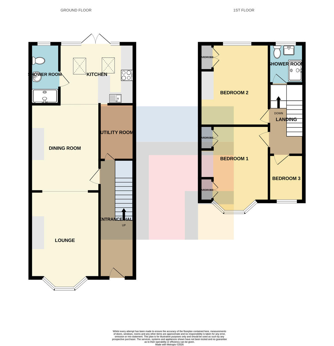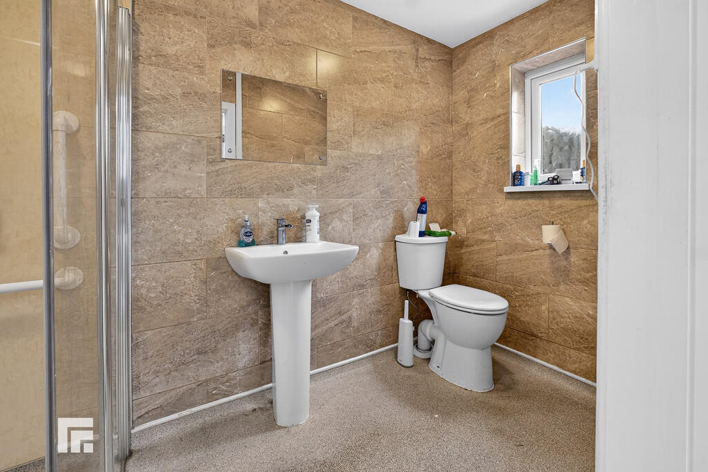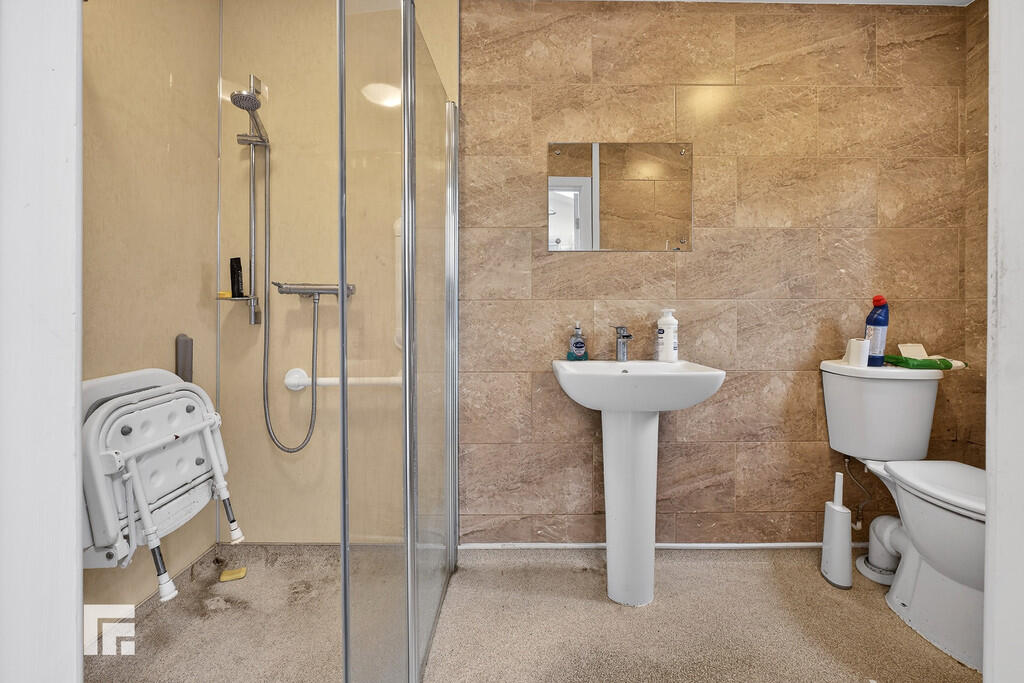 SHOWERROOM9' 10" x 4' 4" (3.00m x 1.34m) Wet room with mains powered shower and glass shower screen. WC. Pedestal wash hand basin with mixer tap over. Double glazed uPVC window to rear aspect. Partly tiled walls. Heated towel rail. Radiator. Shaver point.