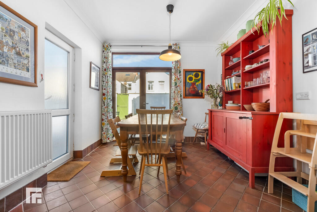 SITTING/DININGROOM12' 4" x 10' 0" (3.76m x 3.07m) A second reception room with French doors opening to rear garden. Vinyl flooring. Alcoves with fixed shelving. Pendant lighting. Radiator.