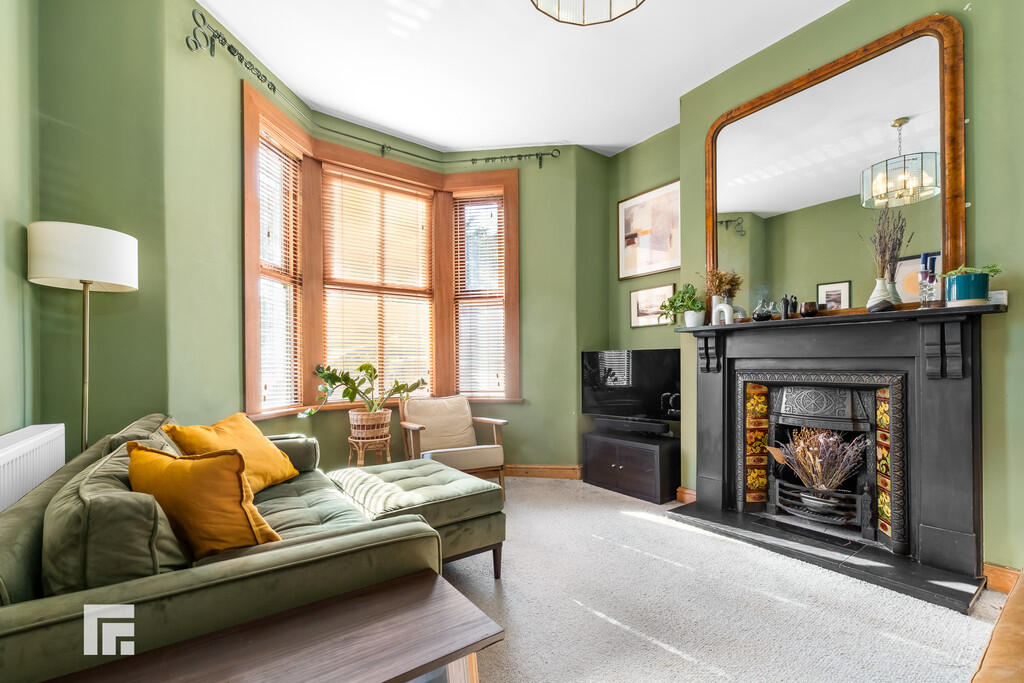 LOUNGE14' 1" x 12' 1" (4.30m x 3.70m) Double glazed timber bay window to front aspect with fitted blinds. Carpeted flooring. Period fireplace with mantel surround and tiled base. Beautiful proportions. Alcoves. Pendant lighting. Radiator.